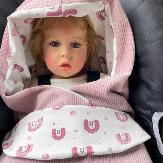 Einschlagdecke für Babyschale Regenbogen l rosa