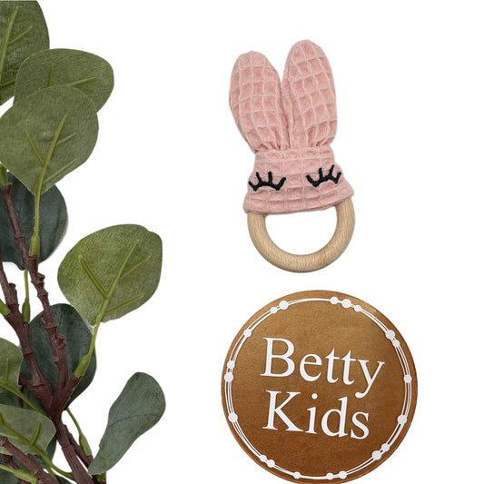 - Hochwertige Materialien: Der Greifling besteht aus robustem Holz und ist mit weicher Baumwolle in Form von süßen Hasenohren versehen – ideal für die zarte Babyhaut.