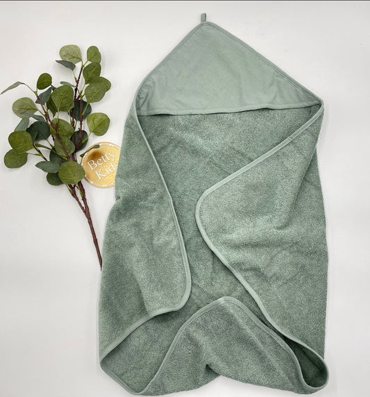 Kapuzenhandtuch mit Name | Boho Bär | altgrün