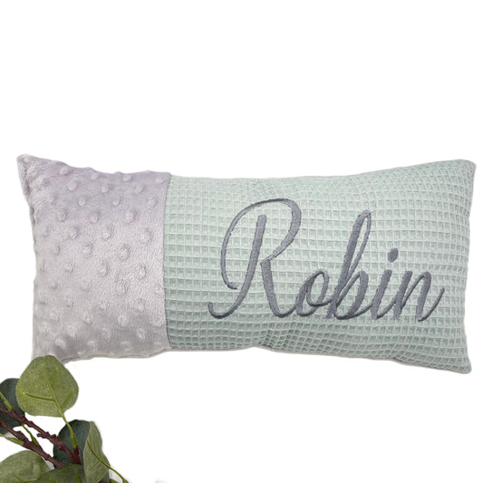 Baby Kissen mit Name, Geburtskissen, grau/ mint