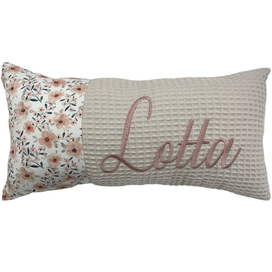 Baby Kissen mit Name, Geburtskissen, Blumenbouquet/ beere