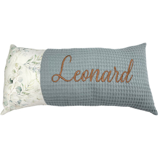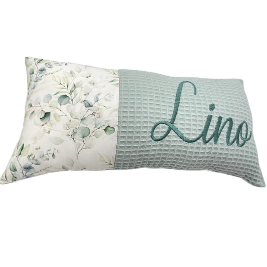 Baby Kissen mit Name, Geburtskissen, Eukalyptus/ altgrün