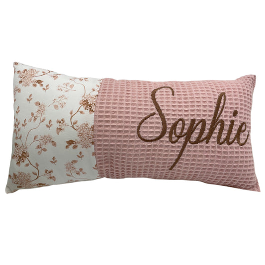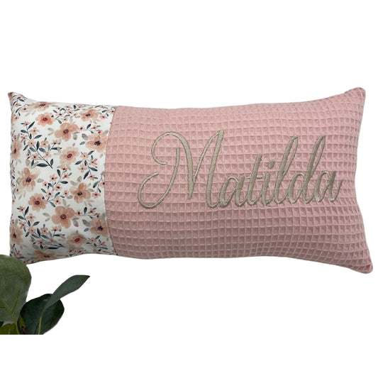 Baby Kissen mit Name, Geburtskissen, rosa/ Hortensien