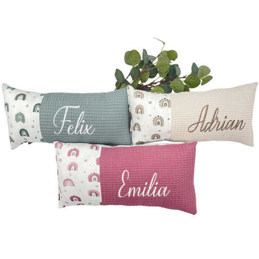 Baby Kissen mit Name, Geburtskissen, Regenbogen