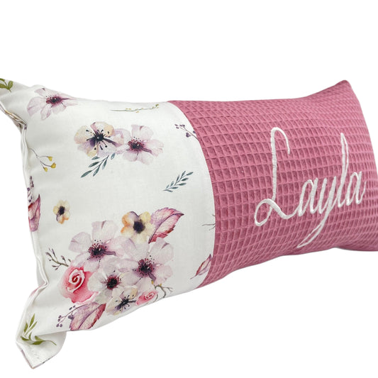 Baby Kissen mit Name, Geburtskissen, Blumenbouquet/ beere